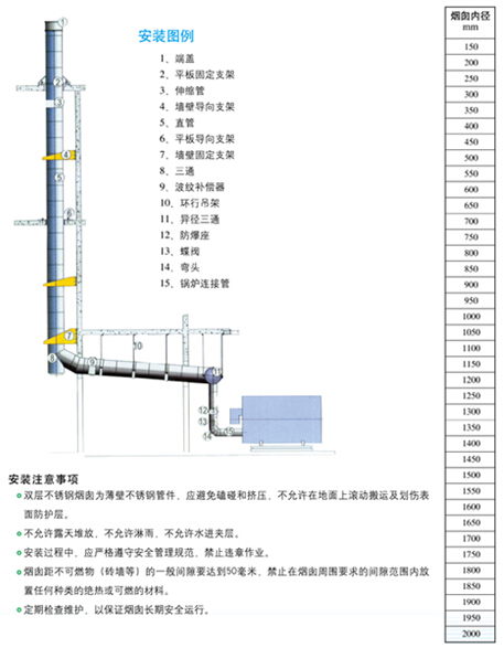 其設(shè)計(jì)、制造、檢驗(yàn)各道程序嚴(yán)格按照國標(biāo)GB50051-2013《煙囪設(shè)計(jì)規(guī)范》、CJ/T288-2008《預(yù)制雙層不銹鋼煙道及煙囪》和國標(biāo)公認(rèn)的BSI-BS*4076:89《Specification for Steel Chimneys》英國國家標(biāo)準(zhǔn)進(jìn)行制作。
